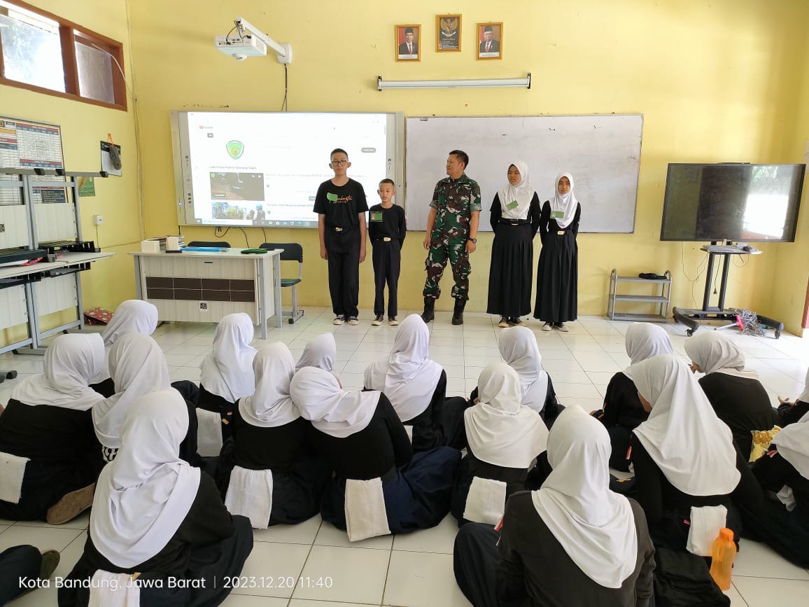 REPORTASEJABAR.COM -Bandung, telepastinews.com_ Pelda Iwan S.A.P ( Detasemen Intelijen Kodam lll/Siliwangi), memberikan materi wawasan kebangsaan dan cinta tanah air kepada para peserta DIKLATSAR PASKHARA ( Pendidikan Latihan Dasar Pasukan Khusus Upacara) SMPN 53 Bandung, Di Kampus SMPN 53 Jl.Arcamanik Sindanglaya No.10 Mandalajati Kota Bandung, Rabu (20/12/2023).