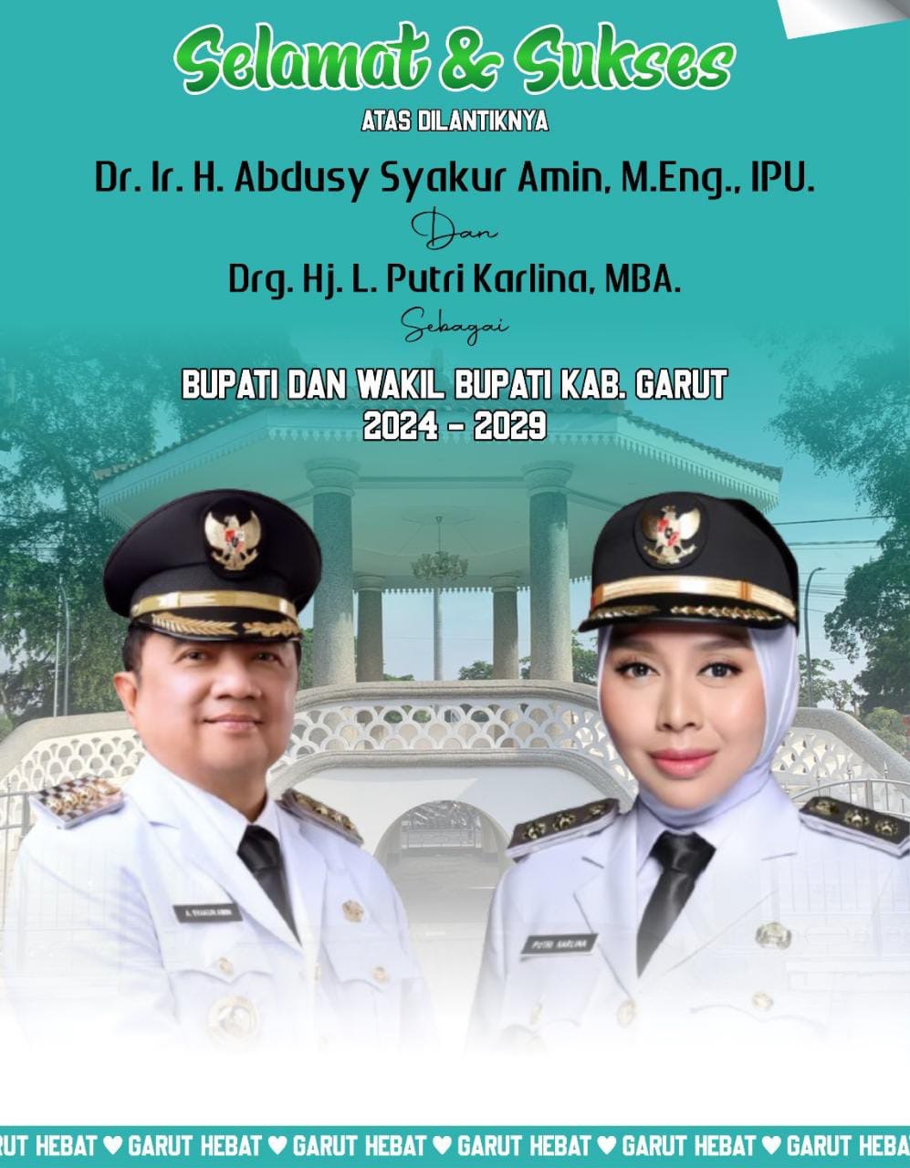 Serah terima jabatan dari penjabat Bupati sebelumnya ke Bupati Garut baru Dr.Ir.H Abdusy Syakur Amin M.Eng.,IPU dan Wakil Bupati Garut baru Drg.Hj.L.Putri Karlina MBA ,yang di pimpinan langsung ketua DPRD Kabupaten Garut.