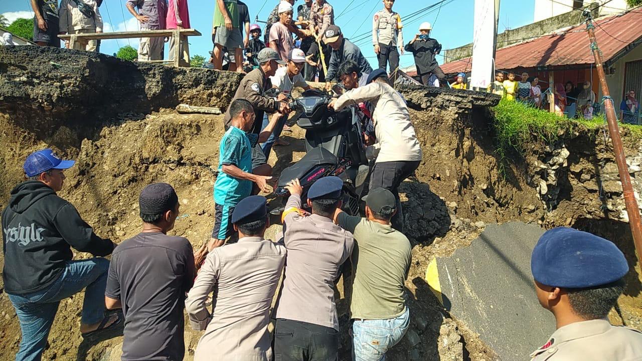 Tim Brimob Polda Jabar sigap mengerahkan personel untuk membantu warga, terutama pejalan kaki dan pengendara sepeda motor yang harus menyeberang di titik jembatan yang terputus. Dengan strategi pengamanan yang matang, anggota Brimob berjibaku di medan sulit demi keselamatan masyarakat.