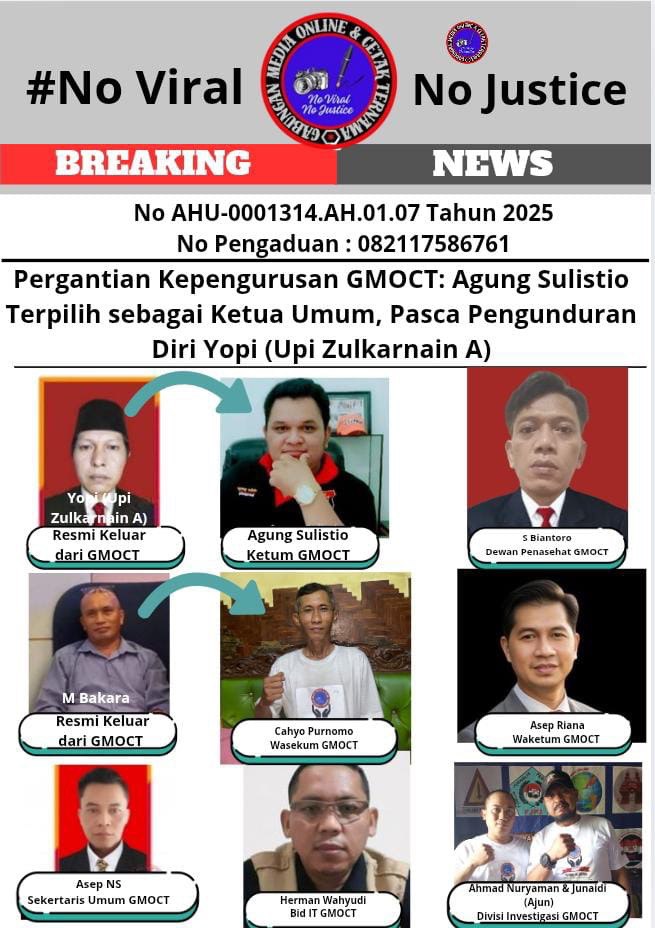 REPORTASEJABAR.COM =Bandung, 18 Maret 2025 – Gabungan Media Online dan Cetak (GMOCT) mengalami pergantian kepengurusan kepemimpinan setelah Ketua Umum Yopi Zulkarnain A dan Wakil Sekretaris Umum M Bakara, Jeansen dan Sutiah yang secara otomatis mengikuti Yopi Zulkarnain resmi mengundurkan diri pada Minggu, 16 Maret 2025. Pengunduran diri tersebut disampaikan melalui pesan WhatsApp kepada Sekretaris Umum GMOCT, Asep NS.