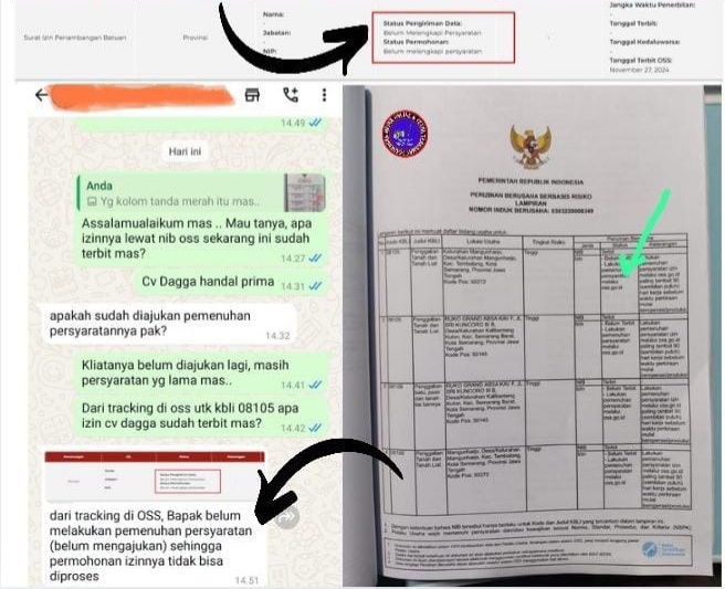 Berdasarkan pelacakan di sistem Online Single Submission (OSS), PT Dagga Handal Prima belum memenuhi persyaratan izin usaha pertambangan. Hal ini dikonfirmasi oleh Dinas Penanaman Modal dan Pelayanan Terpadu Satu Pintu (DPMPTSP) Kota Semarang. “Dari tracking di OSS, PT Dagga Handal Prima belum melakukan pemenuhan persyaratan, sehingga permohonan izinnya tidak dapat diproses,” ungkap seorang pejabat DPMPTSP, Rabu (19/3/2025).