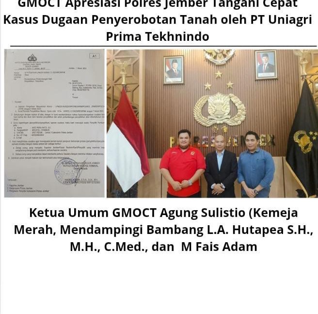 GMOCT Apresiasi Polres Jember Tangani Cepat Kasus Dugaan Penyerobotan Tanah oleh PT Uniagri Prima Tekhnindo