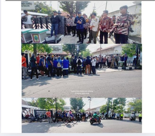 REPORTASEJABAR.COM -Pemalang, Jawa Tengah, 21 Maret 2025 – Program 100 hari kerja Bupati Pemalang kembali diwarnai demonstrasi. Aliansi Kesetiakawanan Sosial menggelar aksi di depan Kantor Inspektorat Kabupaten Pemalang pada Jumat (21/3/2025), menyuarakan dugaan pungutan infaq di sekolah-sekolah dan praktik pungli lainnya. Aksi yang dipimpin Andi Rahmat dan Hamu Fauzi, serta diikuti mahasiswa PMII, ini berujung audensi dengan perwakilan Pemerintah Daerah. Informasi ini didapatkan GMOCT (Gabungan Media Online dan Cetak Ternama) dari media Detikperistiwa, salah satu anggotanya.