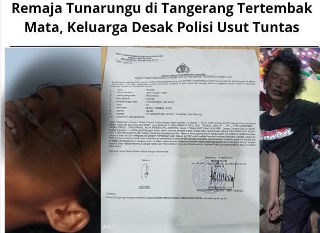 REPORTASEJABAR.COM -Tangerang, (GMOCT) – Rafli Ramadan (15), remaja tunarungu warga Kampung Baru, Desa Rawa Burung, Tangerang, menjadi korban penembakan senapan angin yang mengenai mata kirinya. Kejadian ini terjadi pada Senin, 17 Maret 2025, di sebuah gubuk dekat tempat peristirahatan bus di kawasan Tanah Tinggi, Jalan Daan Mogot Km-23, Kecamatan Tangerang. Keluarga korban mendesak untuk mengusut tuntas kasus ini dan memeriksa saksi kunci.