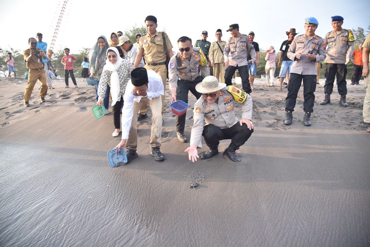 Selain memantau kondisi wisata, Kapolres Kebumen dan Wakil Bupati juga menyempatkan diri untuk mengunjungi penangkaran penyu yang terletak tidak jauh dari Pantai Lembupurwo. Di sana, keduanya turut berpartisipasi dalam kegiatan pelepasan tukik (anakan penyu) ke laut lepas, sebagai bagian dari upaya pelestarian satwa langka tersebut.. (Humas Polres Kebumen)