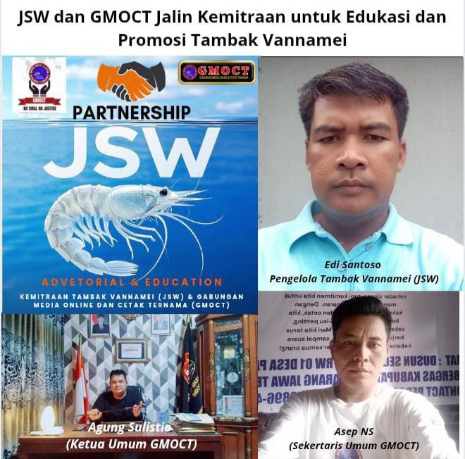 REPORTASEJABAR.COM -Batang, (GMOCT) 17 April 2025 – Tambak Vannamei (JSW) yang beralamat di Jl. Lintas Pantai Sigandu PLTU Desa Depok Kecamatan Kandeman Kabupaten Batang Jawa Tengah Depan Cafe Kelapa Jejer, dan Gabungan Media Online dan Cetak Ternama (GMOCT) resmi menjalin kemitraan strategis untuk mendukung edukasi dan promosi produk perikanan, khususnya udang vannamei. Kemitraan ini diwujudkan dalam bentuk advetorial dan program edukasi yang akan menjangkau masyarakat luas melalui berbagai media online dan cetak yang tergabung dalam GMOCT.