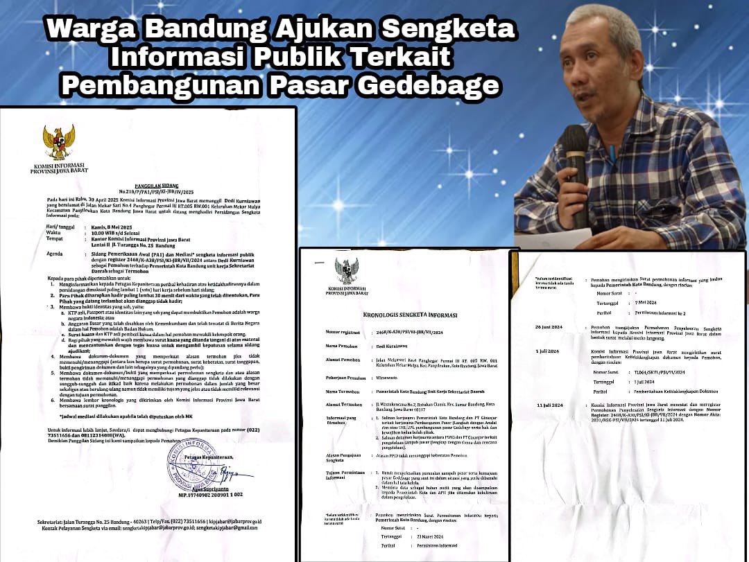 REPORTASEJABAR.COM -Bandung, 04 Mei 2025 – Dedi Kurniawan, warga Kota Bandung, telah mengajukan gugatan sengketa informasi publik kepada Pemerintah Kota Bandung terkait pembangunan Pasar Gedebage. Gugatan diajukan melalui Komisi Informasi Provinsi Jawa Barat dengan nomor register 2468/K-A38/PSI/KI-JBR/VII/2024.