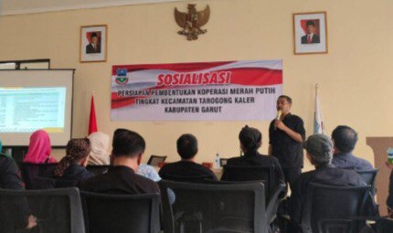 Garut. reportasejabar.com -Kepala Bidang Pemerintahan Desa Idad Bahrudin rabu, 8 Mei 2025 melaksanakan sosialisasikan terkait persiapan pembentukan Koperasi Merah Putih sebagai bagian dari upaya mendukung program Asta Cita Presiden Republik Indonesia H.Prabowo Subianto, khususnya dalam memperkuat ekonomi rakyat dan membangun Indonesia dari akar rumput di Aula Kantot Kecamatan Tarogong Kaler.