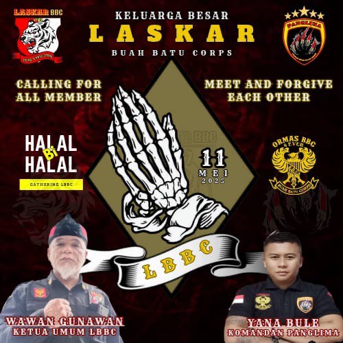 reportasejabar.com.Kota Bandung – Laskar BBC Dewan Pimpinan Wilayah (DPW) Jawa Barat menggelar acara Halal Bihalal dengan tema “Bersama Bergandeng Tangan Menuju Perdamaian dalam Persaudaraan” yang dilaksanakan, di Lesehan Ampera Pinus Jalan Cimbuluit Desa Pager Wangi Puncrut Bandung. Minggu (11/5/2025).