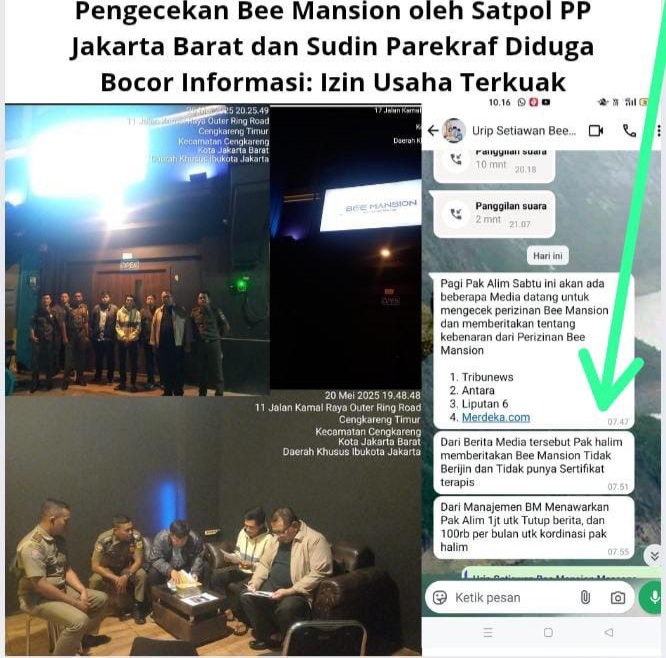 REPORTASEJABAR.COM -Jakarta, 21 Mei 2025 (GMOCT) – Kehebohan terkait Bee Mansion, sebuah tempat pijat di Ruko Mutiara Taman Palem, Jakarta Barat, terus bergulir. Berawal dari laporan warga melalui media online Perisai Hukum.com dan Kabarsbi.com, Gabungan Media Online dan Cetak Ternama (GMOCT) melakukan investigasi mendalam. Informasi yang diperoleh GMOCT dari Kabarsbi.com, yang merupakan anggota GMOCT, mengungkapkan adanya dugaan praktik prostitusi di tempat tersebut. Dugaan ini diperkuat oleh laporan Satuan Polisi Pamong Praja (Satpol PP) Kota Administrasi Jakarta Barat.