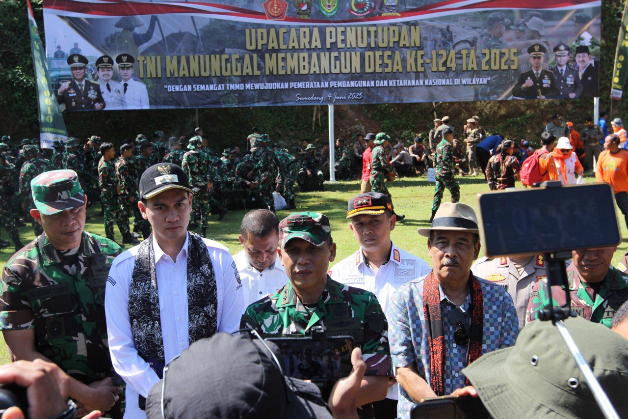 REPORTASEJABAR.COM =Sumedang, – Panglima Kodam III/Siliwangi Mayjen TNI Dadang Arif Abdurahman, S.E., M.Si., CHRMP., secara resmi menutup kegiatan TNI Manunggal Membangun Desa (TMMD) ke-124 TA. 2025 di Lapangan Sepak Bola Desa Pamulihan, Kecamatan Situraja, Kabupaten Sumedang, Rabu (04/06/2025).