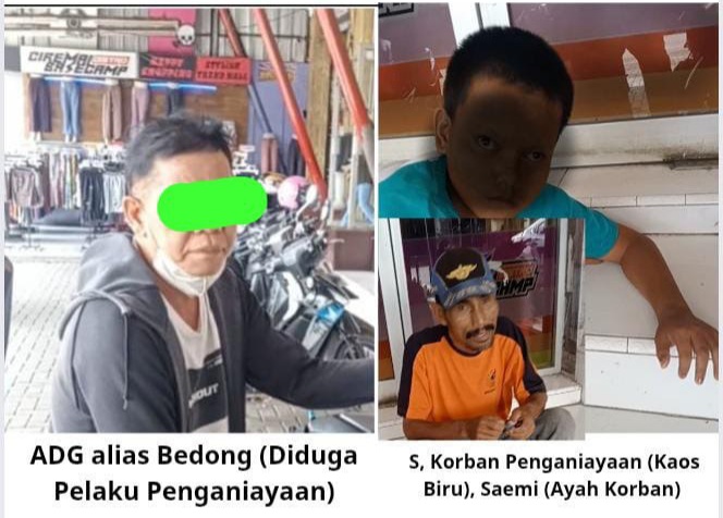 Kronologi kejadian bermula dari perebutan lahan parkir di depan toko distro Ciremai Timur, Kedai Arta, Desa/Kecamatan Ciawigebang, Kuningan. Pelaku, yang diduga bernama ADG alias Bedong (45 tahun), warga Kampung Nagog, Desa Ciawigebang, diduga emosi karena Saemi dan Empek, saudara Saemi, tidak mengindahkan permintaannya untuk melepaskan lahan parkir tersebut. Alih-alih menyelesaikan masalah secara dewasa, ADG justru melampiaskan emosinya dengan menganiaya Sobirin (10 tahun), anak Saemi, yang memiliki kekurangan fisik.