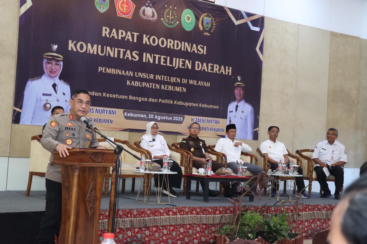 REPORTASEJABAR.COM -Polres Kebumen – Polres Kebumen bersama unsur Forkopimda melaksanakan Rapat Koordinasi Komunitas Intelijen Daerah di Hotel Mexolie Kebumen, Rabu (20/8/2025).