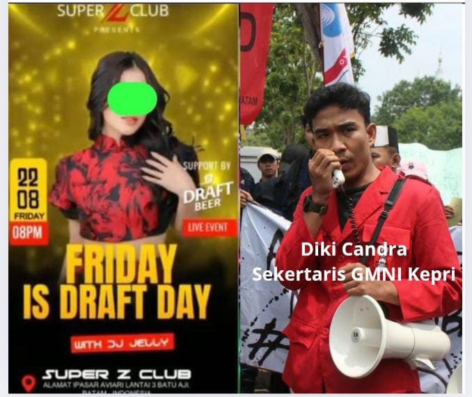 REPORTASEJABAR.COM ‘Batam (GMOCT) 25 Agustus 2025 – Sekretaris Gerakan Mahasiswa Nasional Indonesia (GMNI) Provinsi Kepulauan Riau (Kepri), Diki Candra, mendesak Pemerintah Kota (Pemko) Batam untuk segera menutup Tempat Hiburan Malam (THM) Super Z Aviary terkait pemberitaan viral mengenai sexy dancer di tempat tersebut. Desakan ini disampaikan menyusul keputusan DPRD Kota Batam yang telah meminta penutupan THM tersebut melalui rapat di Komisi II.