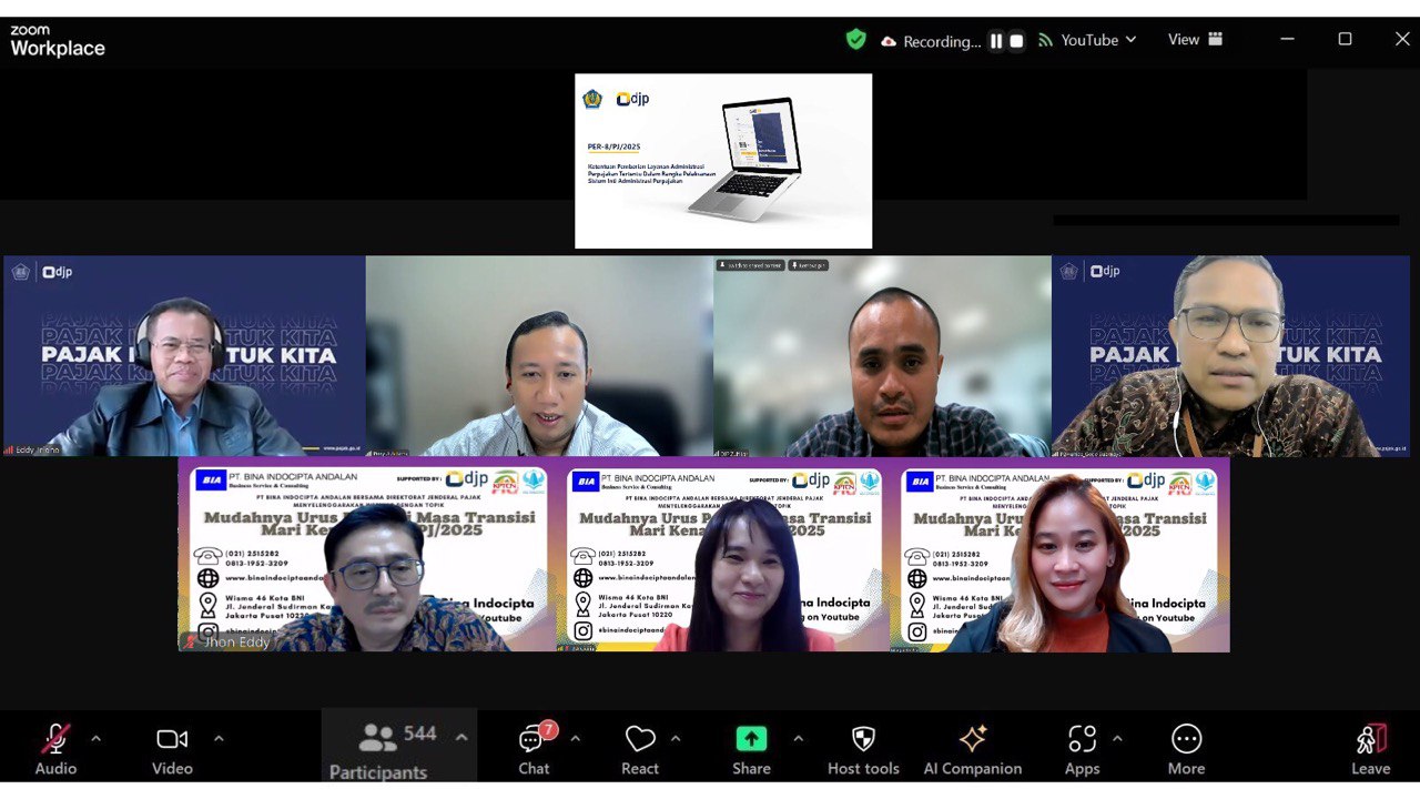Melalui kegiatan webinar ini, PT. Bina Indocipta Andalan berharap para peserta dapat memahami dengan lebih baik penyesuaian administrasi pajak di masa transisi menuju sistem Core Tax Administration System (CTAS) yang ditetapkan dalam PER-8/PJ/2025, serta mampu menerapkannya secara mandiri dan tepat waktu. Webinar ini juga menjadi sarana untuk mendorong budaya kepatuhan yang lebih kuat melalui digitalisasi sistem perpajakan.