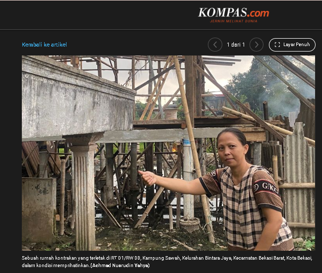 Reportase-jabar.com – Bekasi – Melansir berita dari portal berita kompas dalam tautan link : https://megapolitan.kompas.com/read/2025/08/05/08104271/cerita-keluarga-di-bekasi-hidup-terimpit-di-rumah-yang-ditelan-bumi-dan yang menceritakan tentang  sebuah gang sempit di RT 01/RW 08, Kampung Sawah, Kelurahan Bintara Jaya, berdiri sebuah rumah kontrakan yang kian hari kian ambles. Atapnya rendah, dindingnya rapuh, dan tanahnya terus menurun, seakan bangunan itu perlahan ditelan bumi.