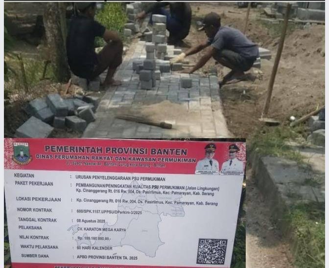 Proyek yang bersumber dari dana APBD Provinsi Banten tahun 2025 senilai Rp 189.160.000 (Seratus Delapan Puluh Sembilan Juta Seratus Enam Puluh Ribu Rupiah) ini, dilaksanakan oleh CV Karaton Mega Karya. Namun, sangat disayangkan, pihak CV hanya mengandalkan tenaga dari warga sekitar tanpa adanya pendampingan tenaga ahli.