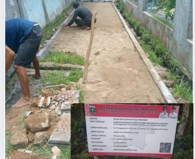 Reportasejabar.com -SERANG (GMOCT) – Proyek peningkatan kualitas Prasarana, Sarana, dan Utilitas (PSU) permukiman berupa jalan lingkungan di Kampung Cinangerang, Desa Pasir Limus, Kecamatan Pamarayan, Kabupaten Serang, Provinsi Banten, terindikasi kuat menjadi bancakan korupsi. Gabungan Media Online dan Cetak Ternama (GMOCT) mendapatkan informasi dari Katatribun.id yang mengungkap dugaan praktik culas dalam pengerjaan proyek senilai Rp 189 juta lebih ini.