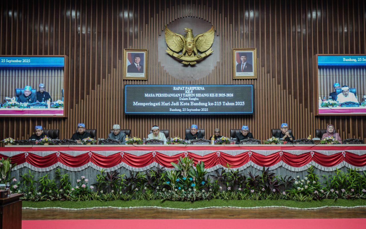 DPRD Kota Bandung menyelenggarakan Rapat Paripurna dalam rangka memperingati Hari Jadi Ke-215 Kota Bandung, di Ruang Rapat Paripurna DPRD Kota Bandung, Kamis, 25 September 2025.