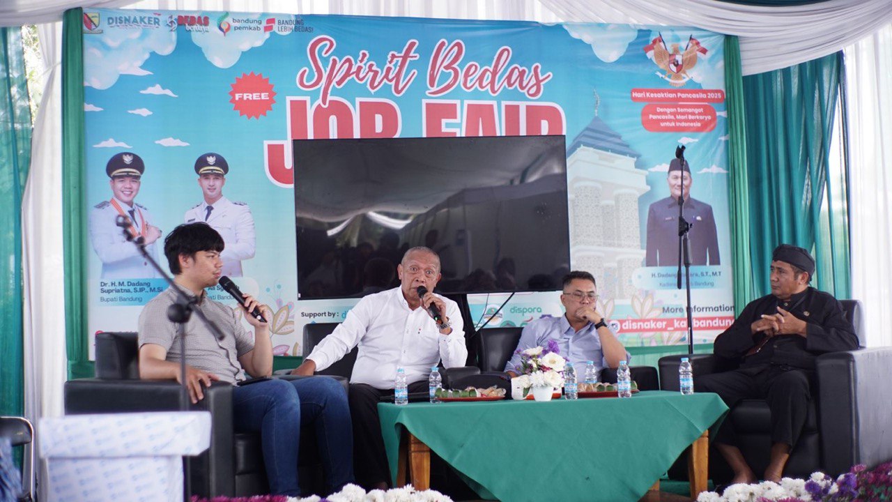 Pada pelaksanaan Job Fair Spirit Bedas ini, Bupati Bandung Dadang Supriatna bahkan memberikan kesempatan 2.000 sampai 3.000 lowongan kerja bagi para pencari kerja.