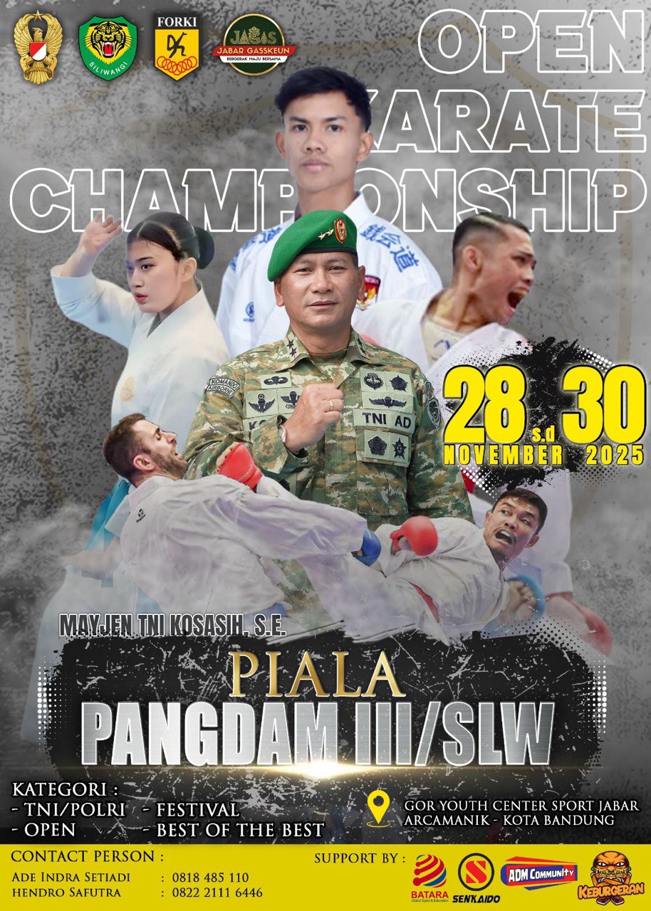 Kejuaraan digelar dalam rangka memajukan prestasi karate sekaligus mempererat hubungan antar-komunitas bela diri, instansi TNI/Polri, dan masyarakat umum. Event tersebut didukung penuh oleh Pangdam III/Slw, Mayjen TNI Kosasih, S.E., sebagai bentuk komitmen terhadap pembinaan olahraga karate di wilayah Siliwangi.