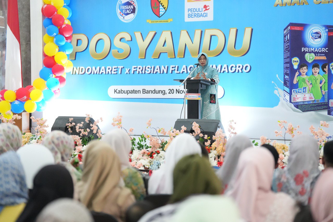 Ketua TP PKK Kabupaten Bandung, Emma Dety Permanawati menyampaikan apresiasi atas kolaborasi Indomaret dan Frisian Flag yang dinilai sejalan dengan komitmen daerah dalam menekan prevalensi stunting.