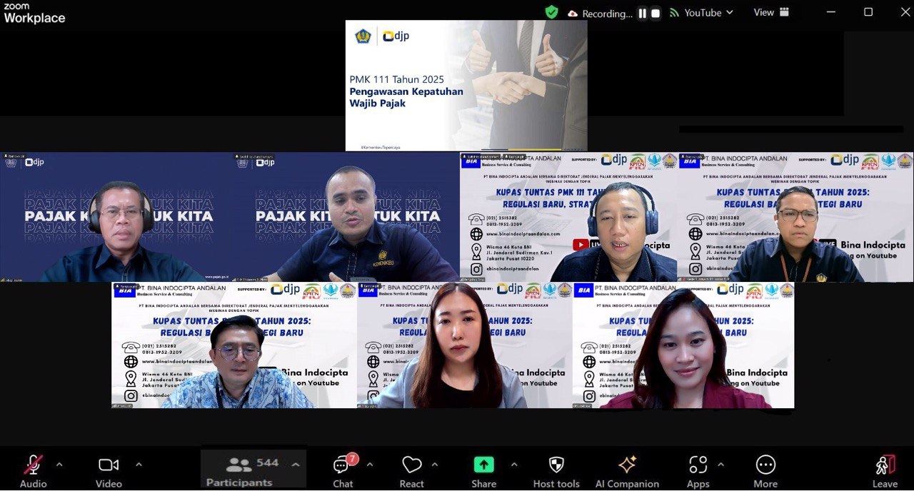 Jakarta, Reportasejabar.com Pada hari Rabu, 28 Januari 2026 – PT. Bina Indocipta Andalan bekerja sama dengan Direktorat Humas DJP dan didukung oleh Konsorsium Pendidikan Tinggi dan Cendekiawan Nusantara serta Sekolah Tinggi Ilmu Ekonomi Mahardika Surabaya dan Sekolah Tinggi Perpajakan Indonesia menyelenggarakan webinar dengan topik “Kupas Tuntas PMK 111: Regulasi Bari, Strategi Baru”. Kegiatan webinar ini menjadi bagian dari komitmen berkelanjutan untuk meningkatkan pemahaman dan kesiapan wajib pajak serta para pemangku kepentingan terhadap regulasi perpajakan terbaru yakni, Peraturan Menteri Keuangan Nomor 111 Tahun 2025 yang merupakan kebijakan strategis yang dikeluarkan pemerintah sebagai bagian dari penguatan administrasi perpajakan dan reformasi sistem perpajakan nasional.