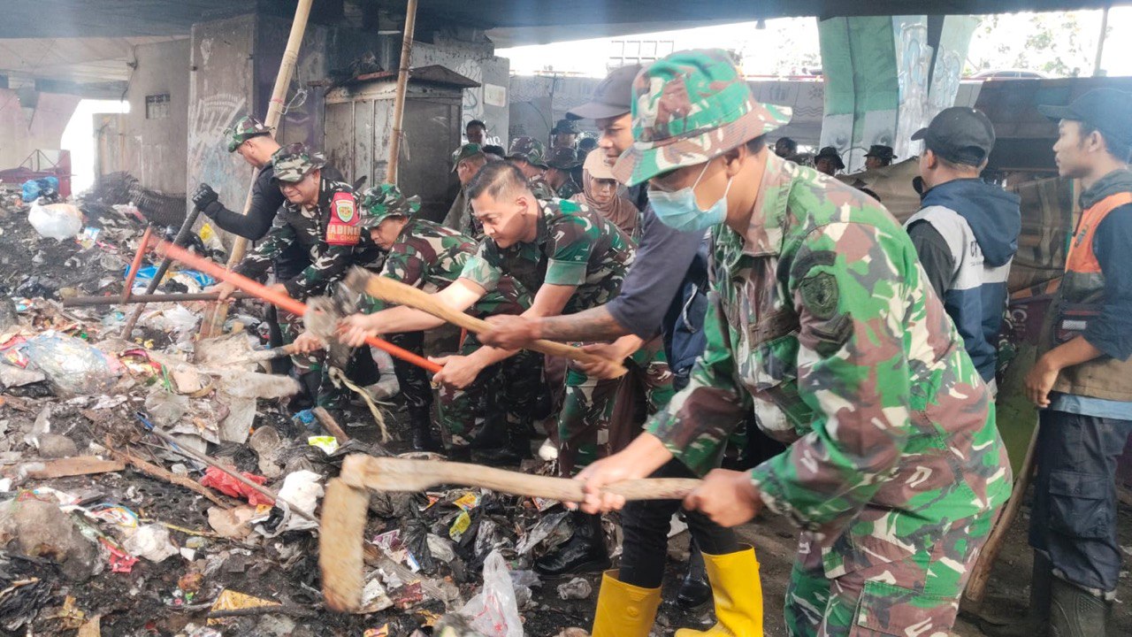 kota Bandung Reportasejabar.com Koramil 1812/BW, Kodim 0618/BS melaksanakan kegiatan Karya Bhakti bersih bersih di kolong Jembatan, yang dilaksanakan Taman film Jalan Layang Pasupati, Kelurahan Tamansari, Kecamatan Bandung Wetan, Kota Bandung, Jumat 06 Februari 2026.